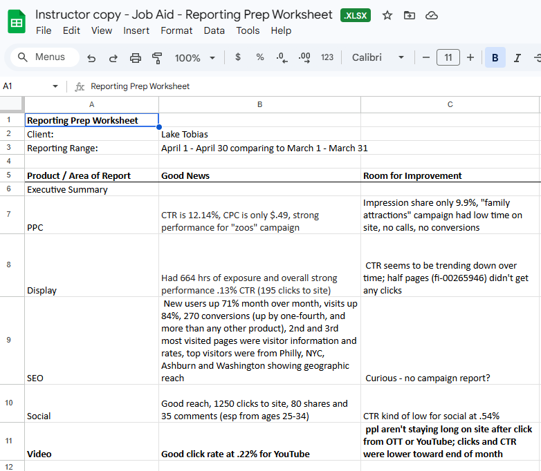 Instructor copy – Job Aid: Reporting prep worksheet (Excel)